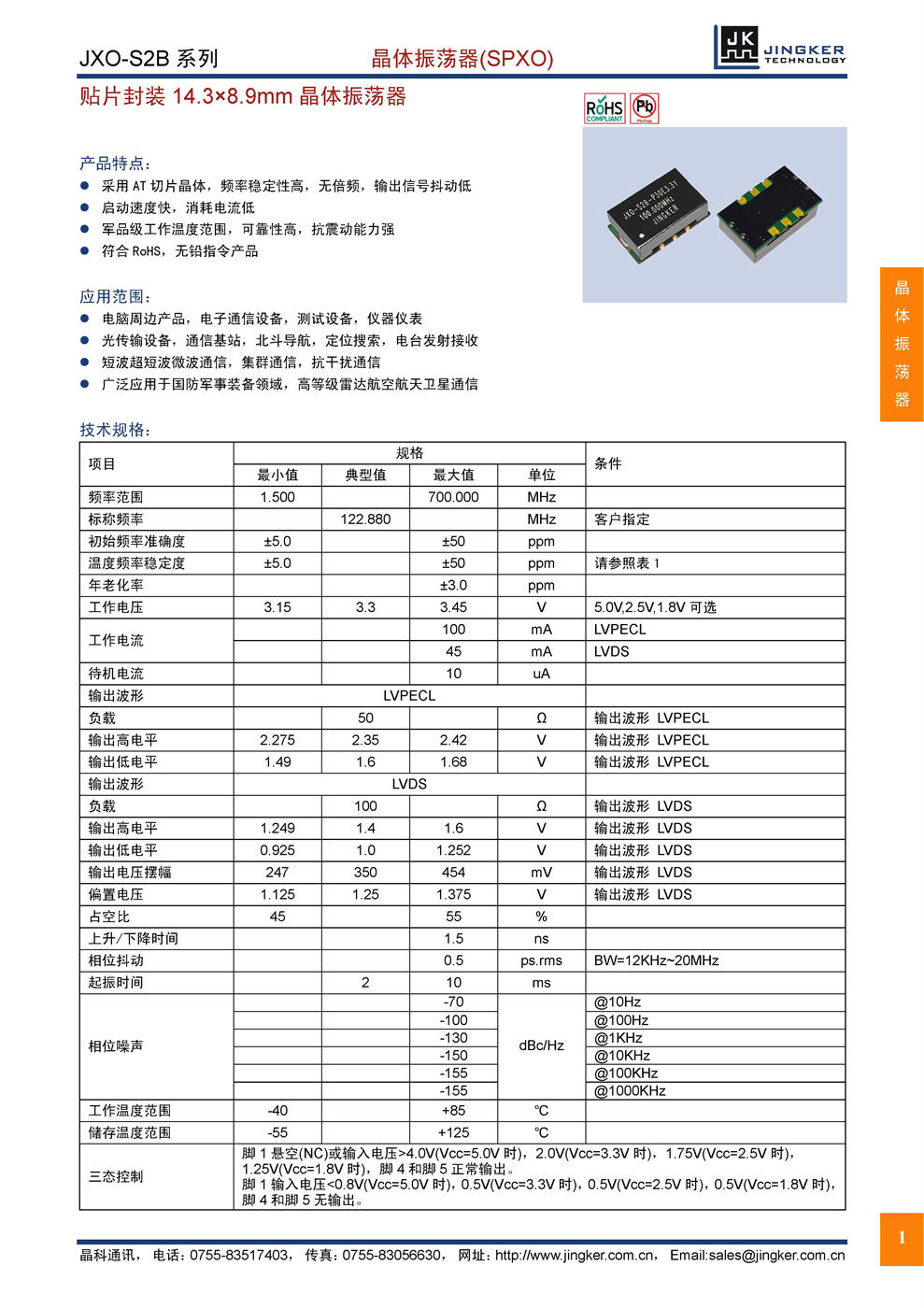 产品特点:AT切片晶体,无倍频,低抖动;快速启动,低消耗电流;军品级工作温度范围,抗震动能力强;符合RoHS,无铅指令产品。应用范围:电子通信,测试仪表;导航定位,电台收发;短波微波,集群通信;航空航天卫星,军用通信。