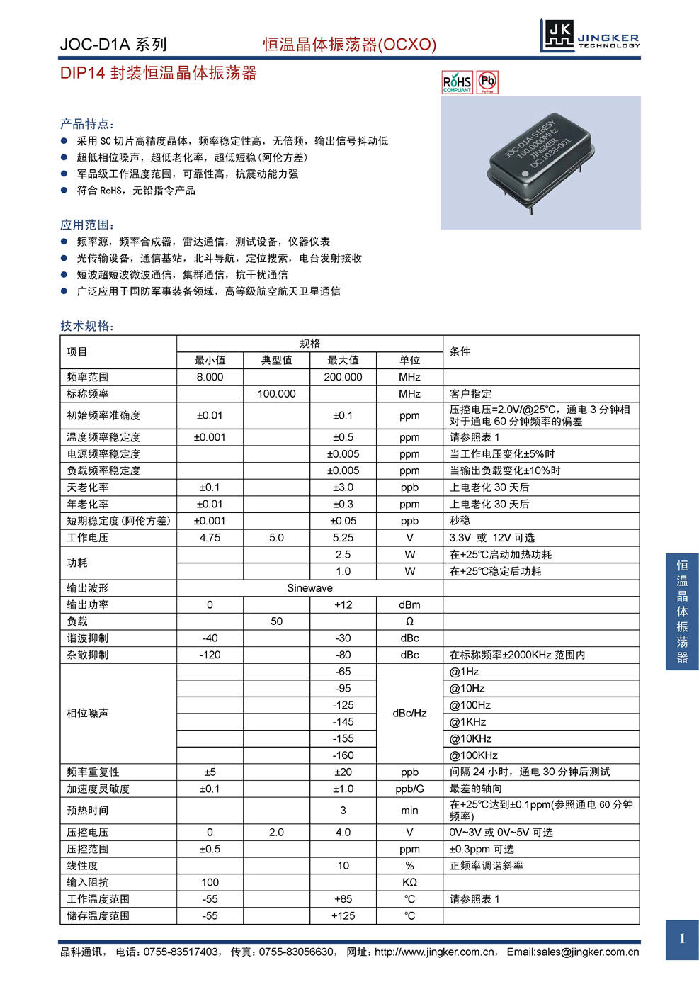 产品特点:采用SC切片高精度晶体,频率稳定性高,无倍频,输出信号抖动低;超低相位噪声,超低老化率,超低短稳(阿伦方差);军品级工作温度范围,可靠性高,抗震动能力强;符合RoHS,无铅指令产品。应用范围:频率源,频率合成器,雷达通信,测试设备,仪器仪表;光传输设备,通信基站,北斗导航,定位搜索,电台发射接收;短波超短波微波通信,集群通信,抗干扰通信;广泛应用于国防军事装备领域,高等级航空航天卫星通信。
