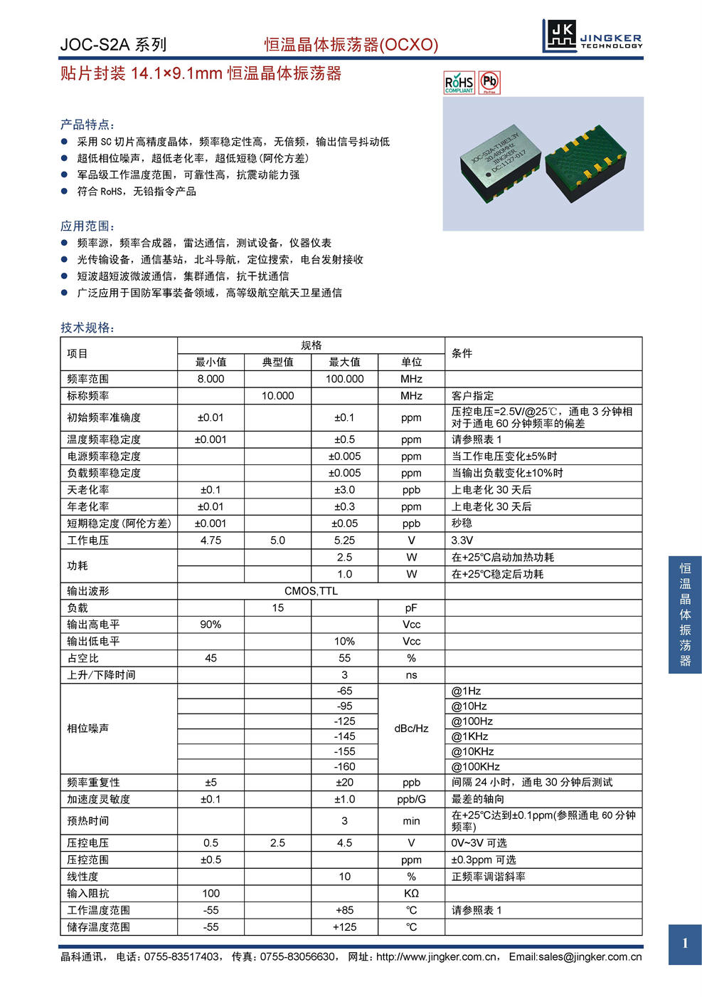 产品特点:采用SC切片高精度晶体,频率稳定性高,无倍频,输出信号抖动低;超低相位噪声,超低老化率,超低短稳(阿伦方差);军品级工作温度范围,可靠性高,抗震动能力强;符合RoHS,无铅指令产品。应用范围:频率源,频率合成器,雷达通信,测试设备,仪器仪表;光传输设备,通信基站,北斗导航,定位搜索,电台发射接收;短波超短波微波通信,集群通信,抗干扰通信;广泛应用于国防军事装备领域,高等级航空航天卫星通信。