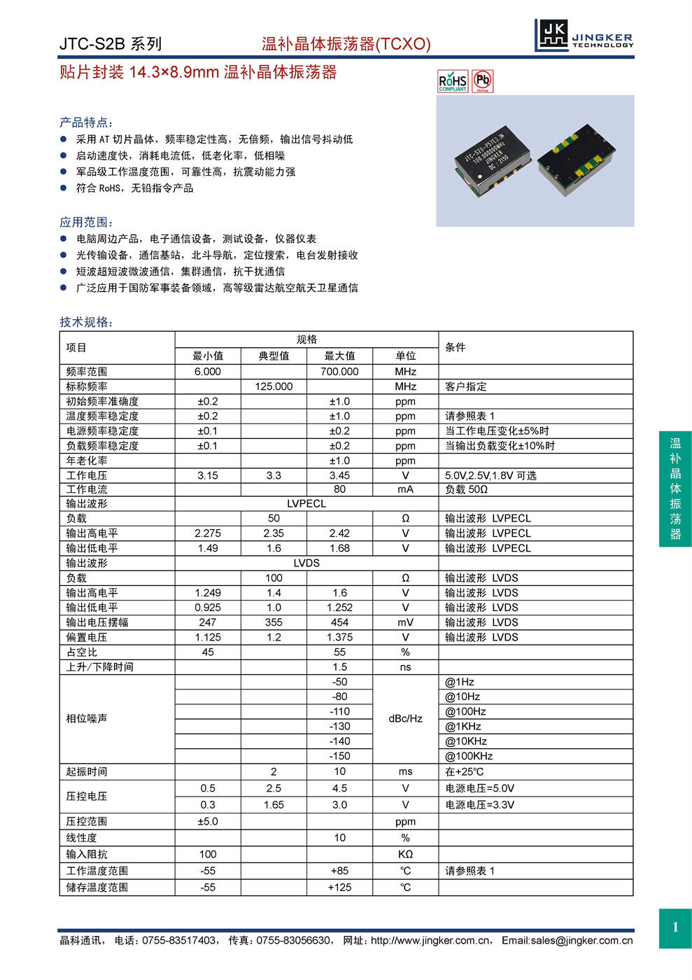 产品特点:采用AT切片晶体,频率稳定性高,无倍频,输出信号抖动低;启动速度快,消耗电流低,低老化率,低相噪;军品级工作温度范围,可靠性高,抗震动能力强;符合RoHS,无铅指令产品。应用范围:电脑周边产品,电子通信设备,测试设备,仪器仪表;光传输设备,通信基站,北斗导航,定位搜索,电台发射接收;短波超短波微波通信,集群通信,抗干扰通信;广泛应用于国防军事装备领域,高等级雷达航空航天卫星通信。